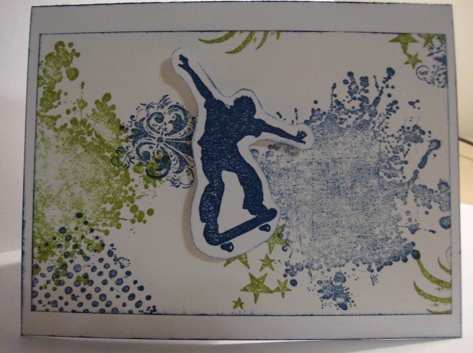 (All Stampin UP except the cardstock. Skateboarder is popped up on those little white, spongy things, lol.)