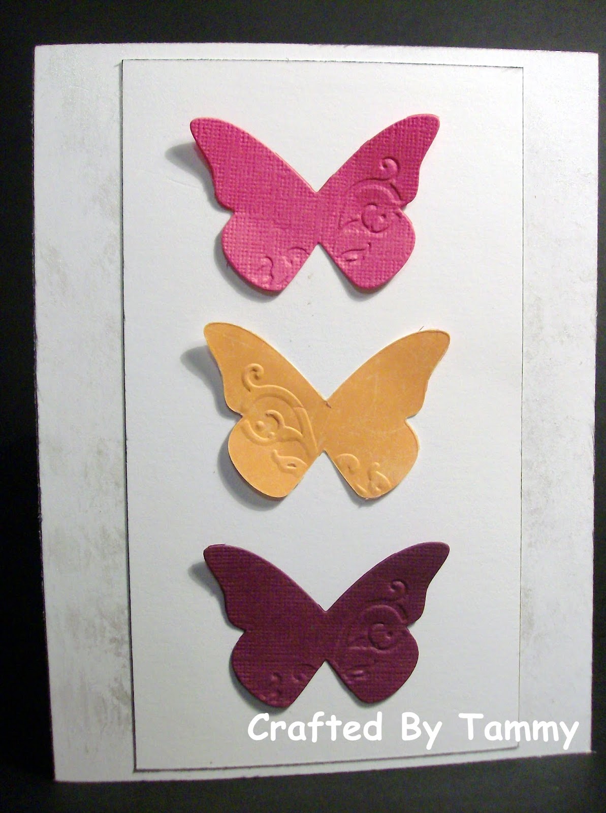 A square punch was used on this one. I wished I had used a dimensional under the butterflies. Next time!